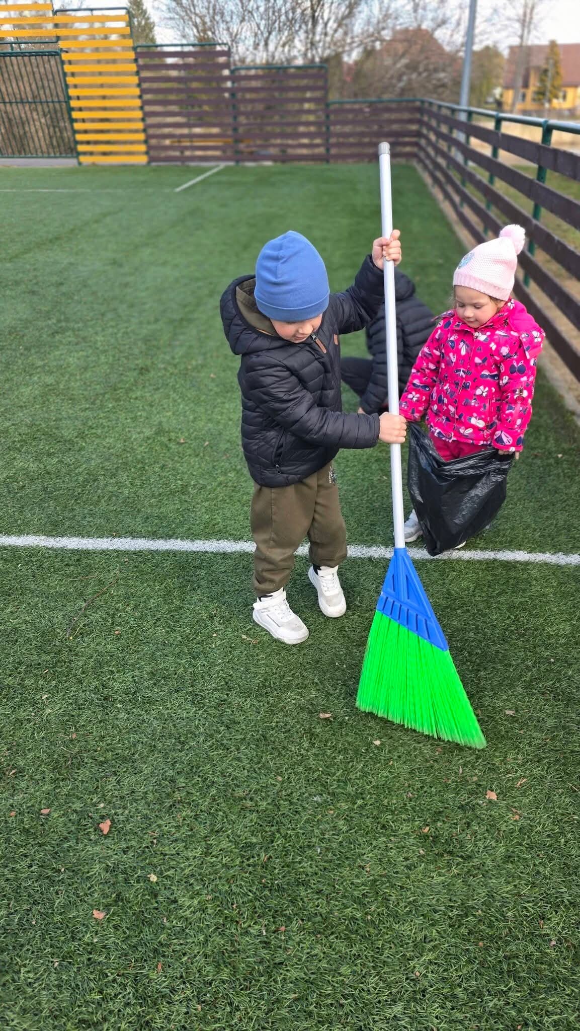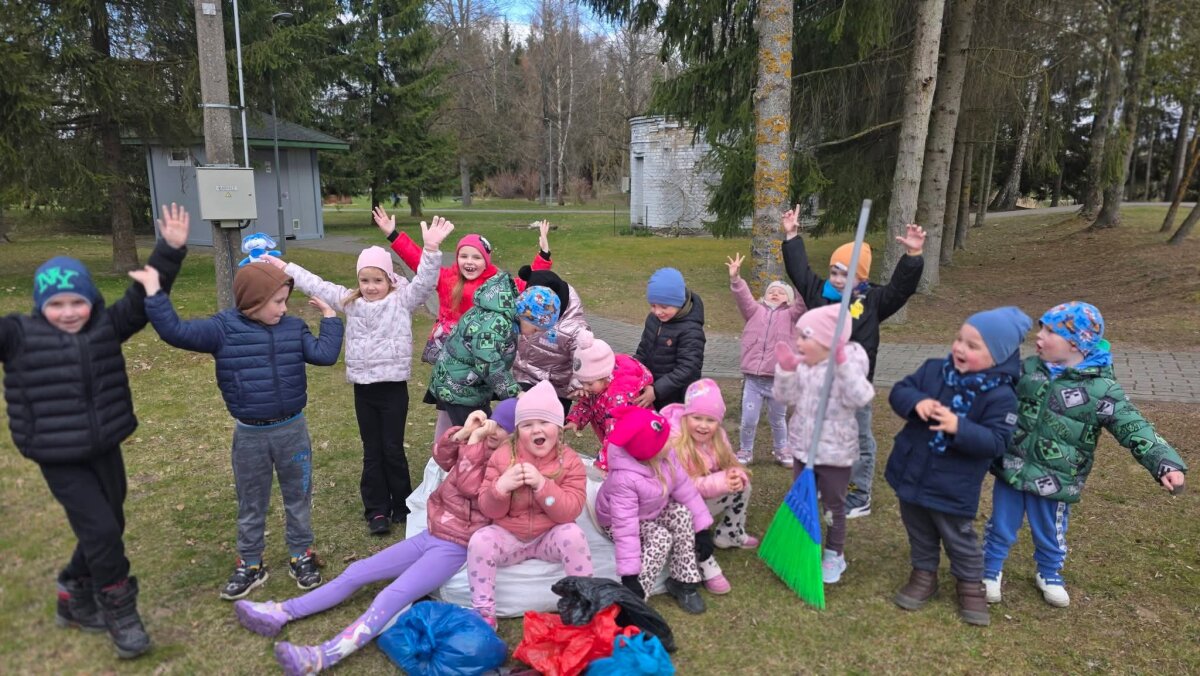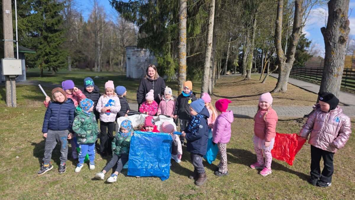 Darbingai nusiteikę mažjeji talkininkai pasiskirstę darbus, rinko vėjo nulaužytas medžių šakeles, kiti rinko šiukšles, lapus, šlavė maniežą.