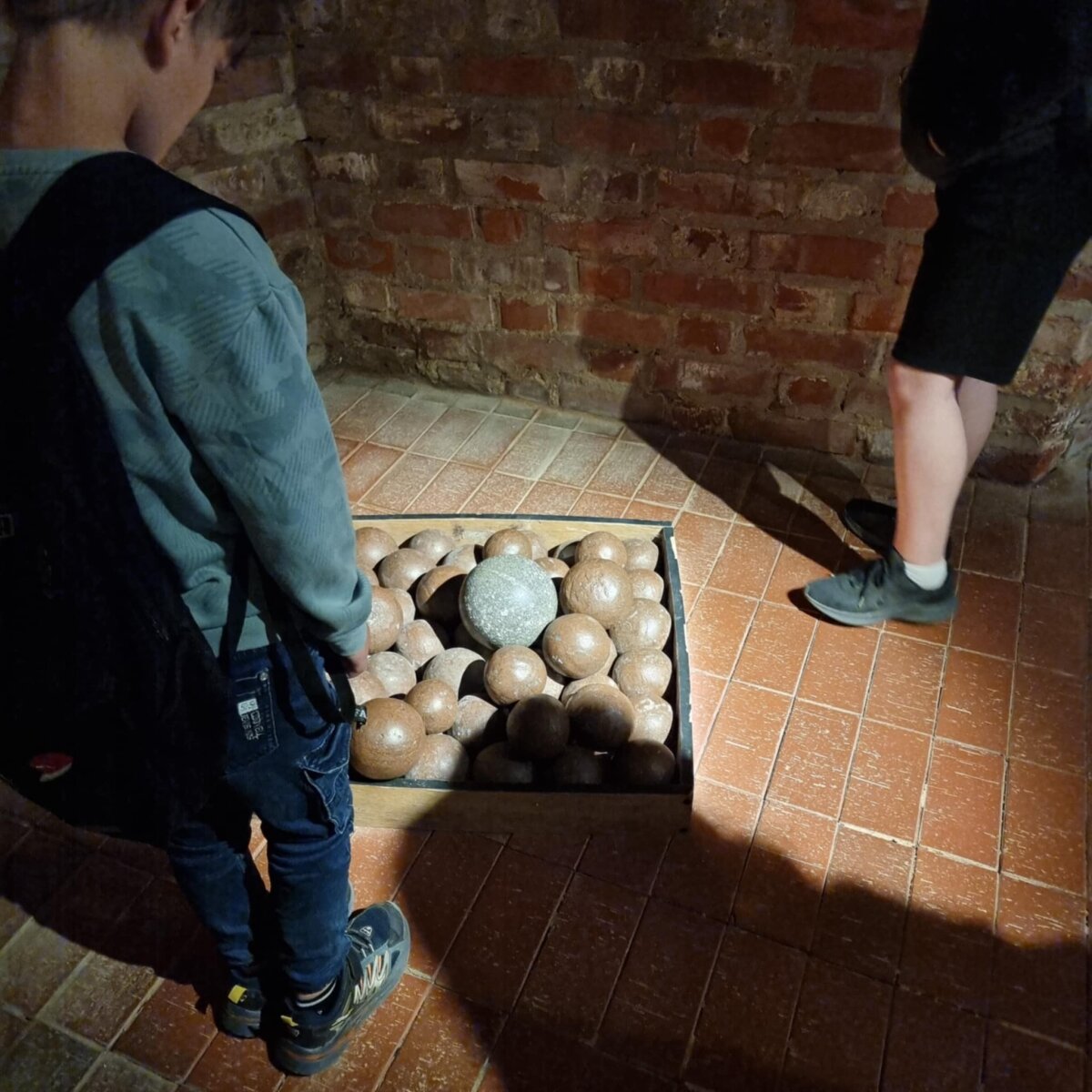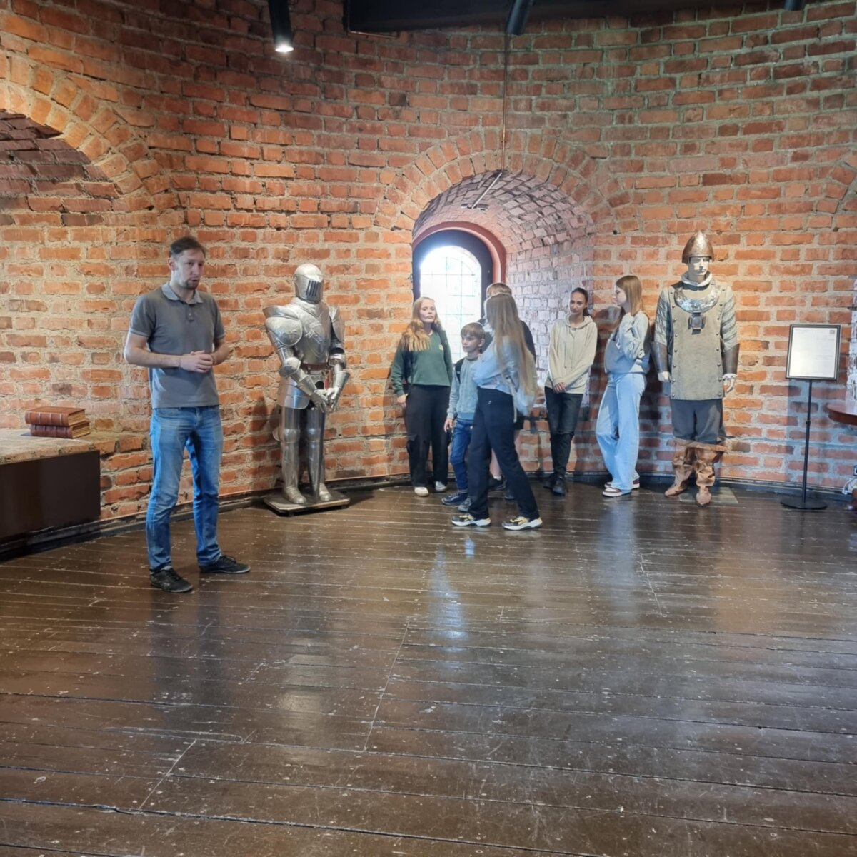 Pirmoji stotelė – Kauno pilis, viena seniausių mūrinių pilių Lietuvoje. XIV amžiaus viduryje pastatyta Kauno pilis yra seniausias miesto istorinis objektas ir viena seniausių mūrinių Lietuvos pilių. Restauruotose ir atkurtose pilies bokšto erdvėse įrengtos ekspozicijos, skirtos pilies istorijai, pristatomi reikšmingiausi istoriniai faktai bei asmenybės. Čia mokiniai susipažino su viduramžių laikų istorija, sužinojo apie pilies reikšmę gynyboje, gyvenimo būdą senovėje ir galėjo iš arčiau apžiūrėti istorinius ginklus. Edukacijos metu vaikai aktyviai dalyvavo diskusijose, atsakinėjo į klausimus, gilino žinias apie Lietuvos praeitį.