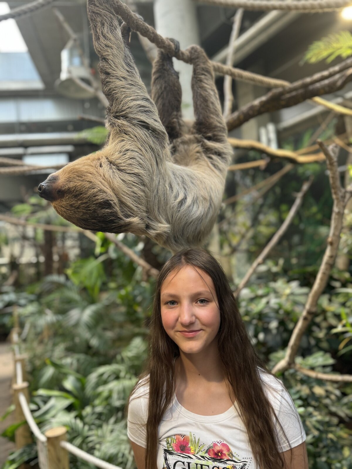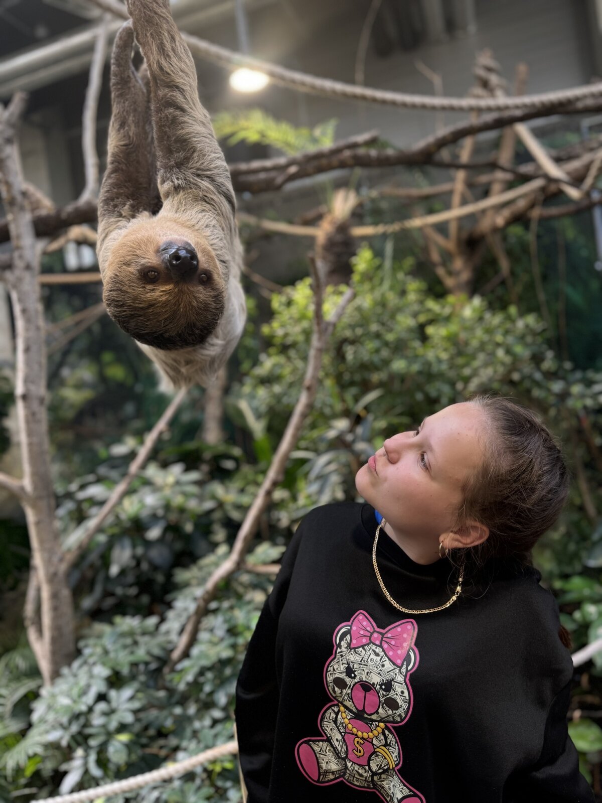 Po edukacijos muziejuje mokiniai dar spėjo pasidžiaugti apsilankymu Lietuvos zoologijos sode. Vaikštinėdami alėjomis jie stebėjo įvairius gyvūnus, pasidžiaugė atbundančia vasaros gamta ir aktyvia gyvūnų veikla. Kelionės pabaigoje laukė ypatinga pažintis – susitikimas su tinginiu, kuris ne tik sužavėjo savo lėtu gyvenimo tempu, bet ir paskatino susimąstyti apie gyvūnų įvairovę bei jų prisitaikymą prie aplinkos. Tai buvo smagi, šilta ir kupina šypsenų išvykos pabaiga.