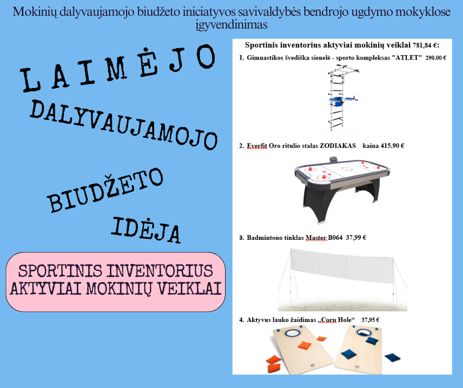 Mokinių DALYVAUJAMOJO BIUDŽETO projektų idėjų sąrašas