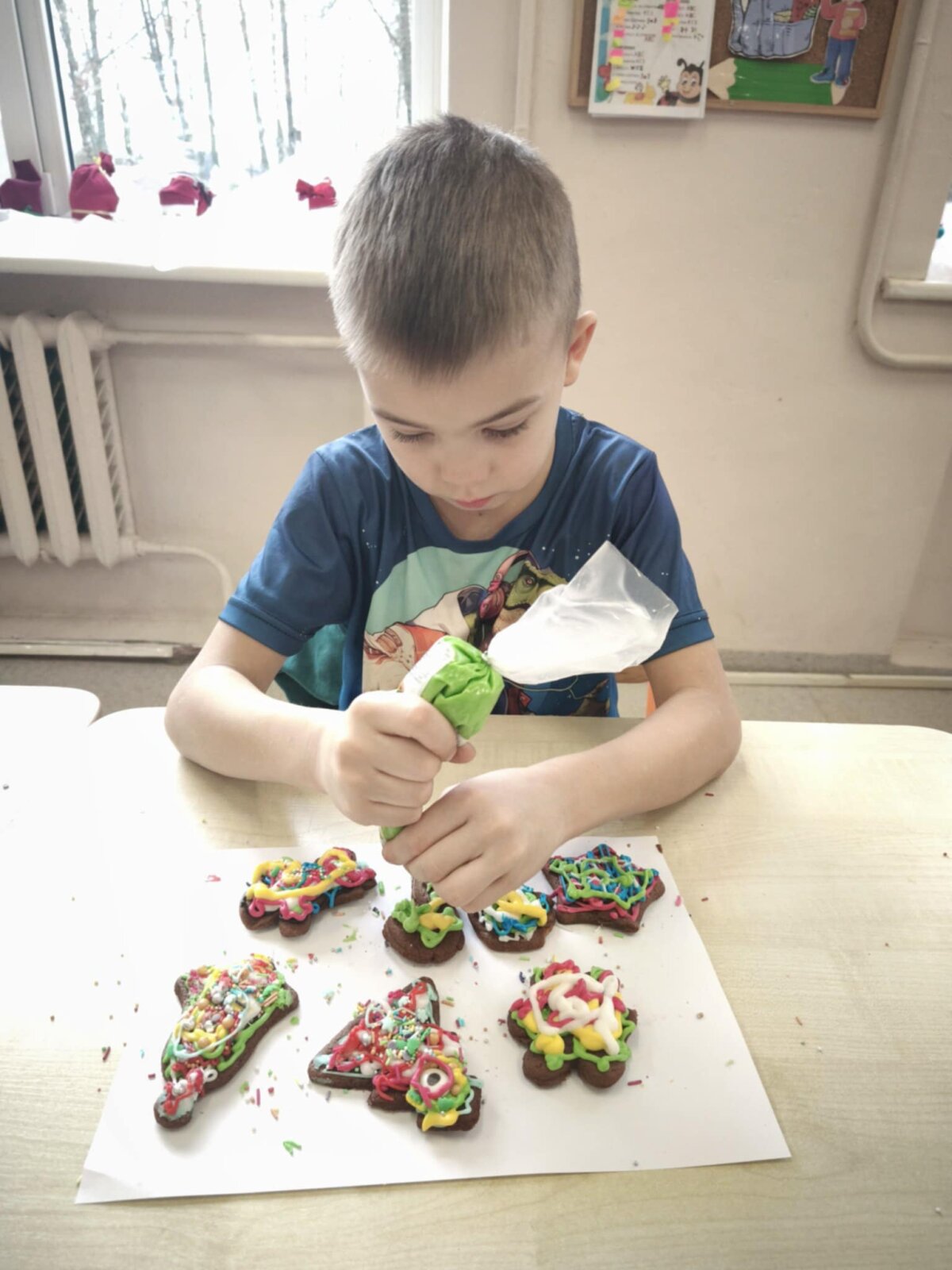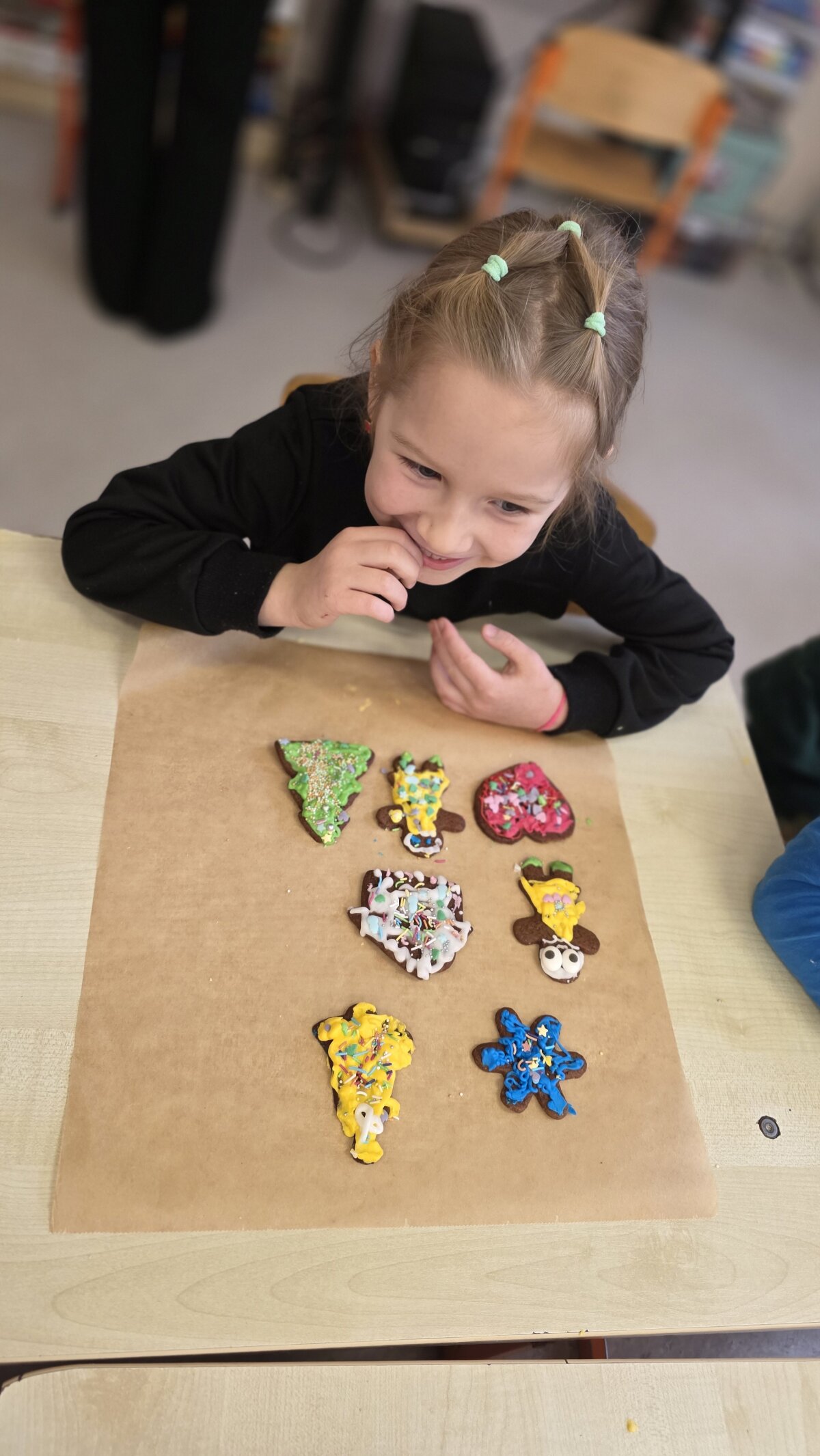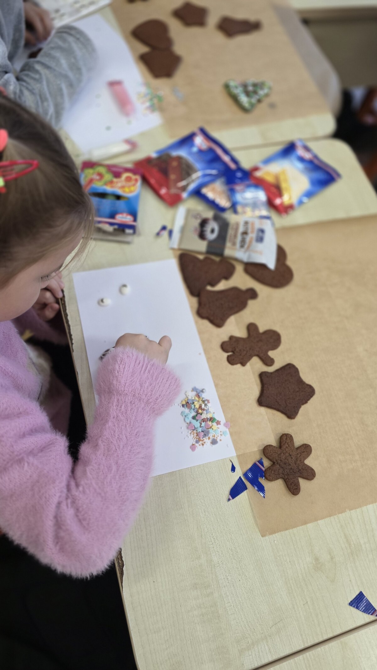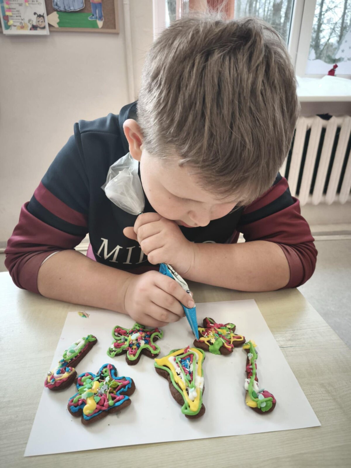 Kartu su naujais draugais jie kepė ir dekoravo imbierinius meduolius kalėdiniais motyvais. Į meduolius vaikai sudėjo pačias geriausias ir gražiausias mintis, o juos puošdami atskleidė savo kruopštumą bei fantaziją.