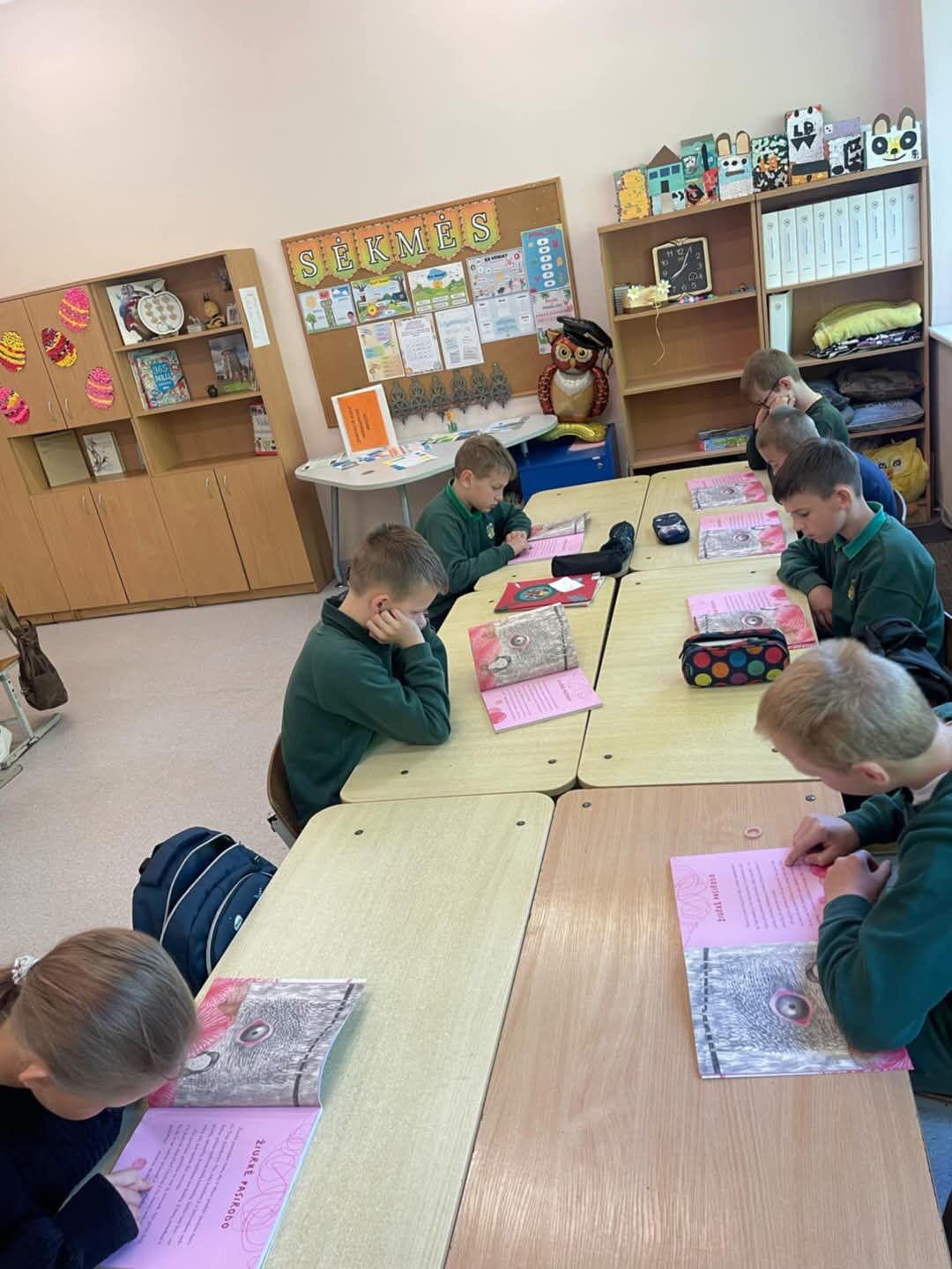 Pirmos pamokos metu visų klasių mokiniai pasinėrė į literatūros pasaulį – mokiniai skaitė ištraukas iš savo mėgstamų knygų. Šios skaitymo akimirkos virto jaukiu ritualu, kuris subūrė visą bendruomenę ir paskatino pasidalyti įdomiausių kūrinių siužetais.