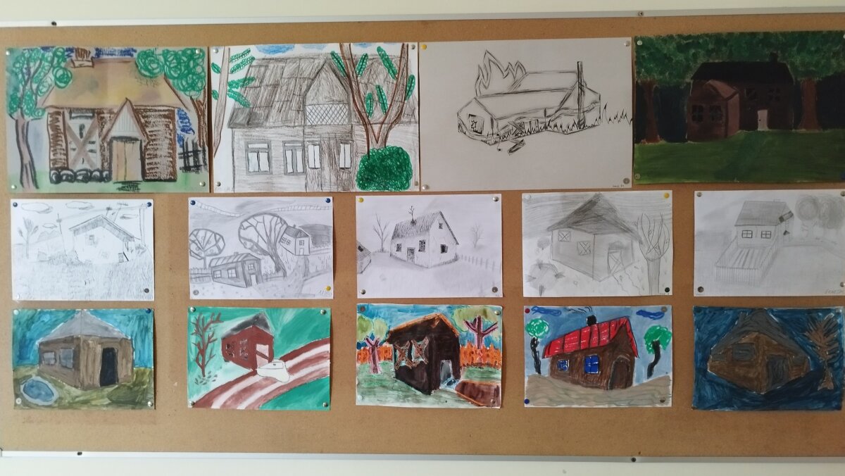 Dailės pamokų metu vaikai kūrė piešinius tema „Palikti namai“. Ši iniciatyva tapo vizualiniu simboliu, įprasminančiu tremtinių netektį ir skausmą. Dailės darbuose – tapybos ir grafikos kompozicijose – namai vaizduojami tamsiomis, niūriomis spalvomis, atspindinčiomis išgyventą neteisybę ir netektis.