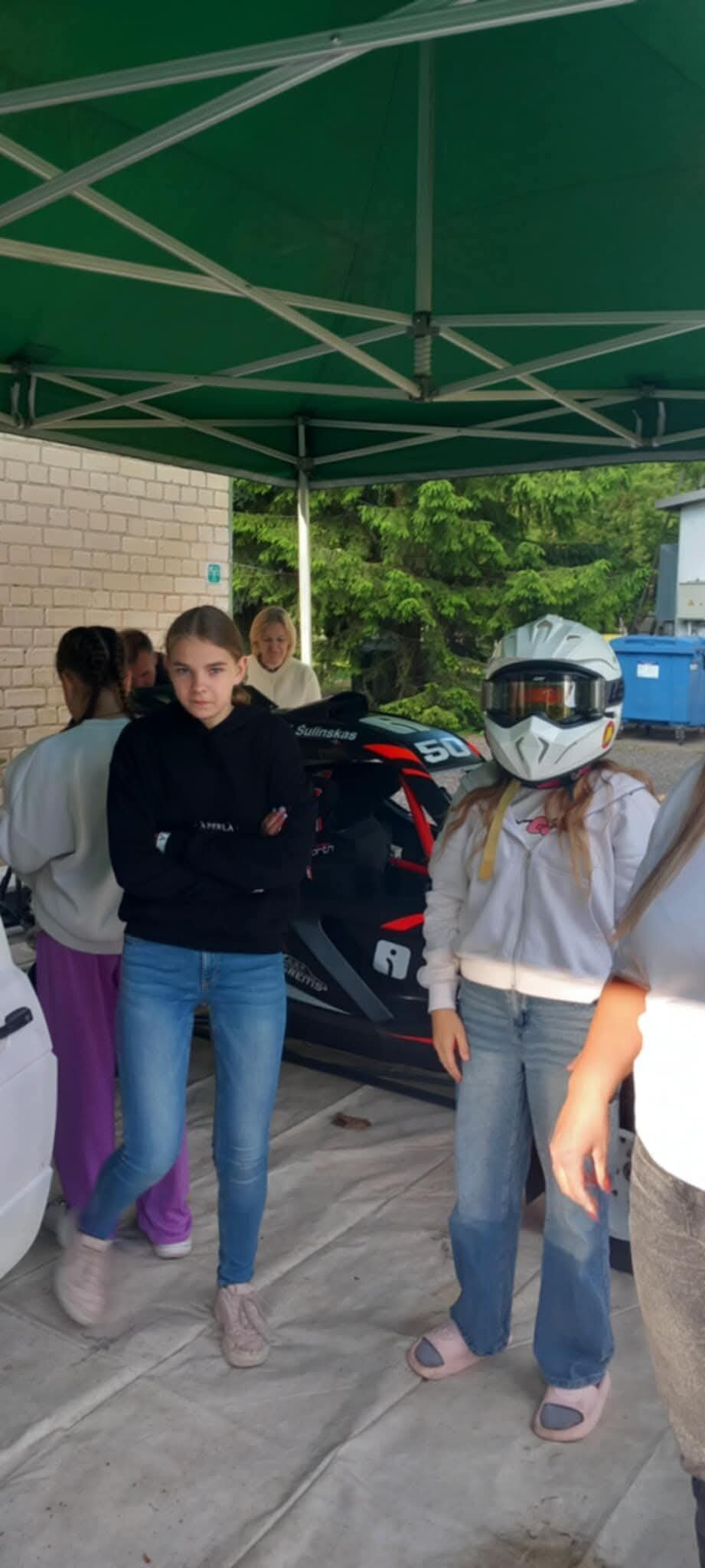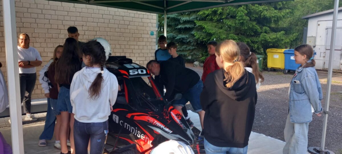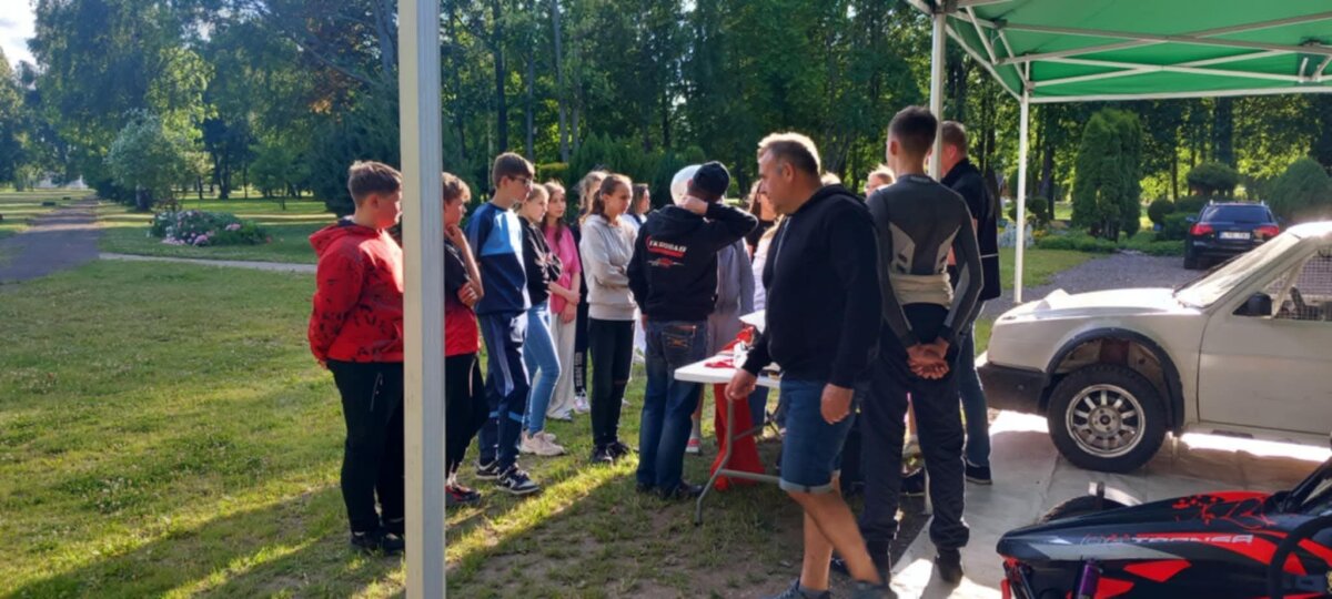 Susirinkę ir įsikūrę kabinetuose, skubėjome pasitikti pirmuosius svečius. Mūsų renginyje dalyvauti sutiko LMS atstovai Emilija, Tomas ir Žygimantas. Moksleiviai visus „uždegė“ įdomiomis, įtraukiančiomis veiklomis, todėl net nepastebėjome, kaip prabėgo valanda. Po grupinių veiklų visi skubėjome į lauką, kur mūsų laukė pažintis su Crosskart bei lenktyniniu automobiliu ir šauniais šio sporto entuziastais. Buvo be galo smagu stebėti, su kokiu užsidegimu mokiniai klausėsi svečių pasakojimų, išbandė skirtingus šalmus, pirštines ir kitą įrangą. Crosskart lenktyniaujantis Kernius Šulinskas daugelį nustebino jaunu savo amžiumi. Jam dar tik 14, o patirtis šiame sporte tikrai didelė. Visi dalyviai pripažino, jog buvo labai įdomu, todėl ši veikla truko ilgiau nei planavome. Tariame ačiū mokytojai Aurikai už galimybę praplėsti savo akiratį, sužinoti daug įdomios informacijos.