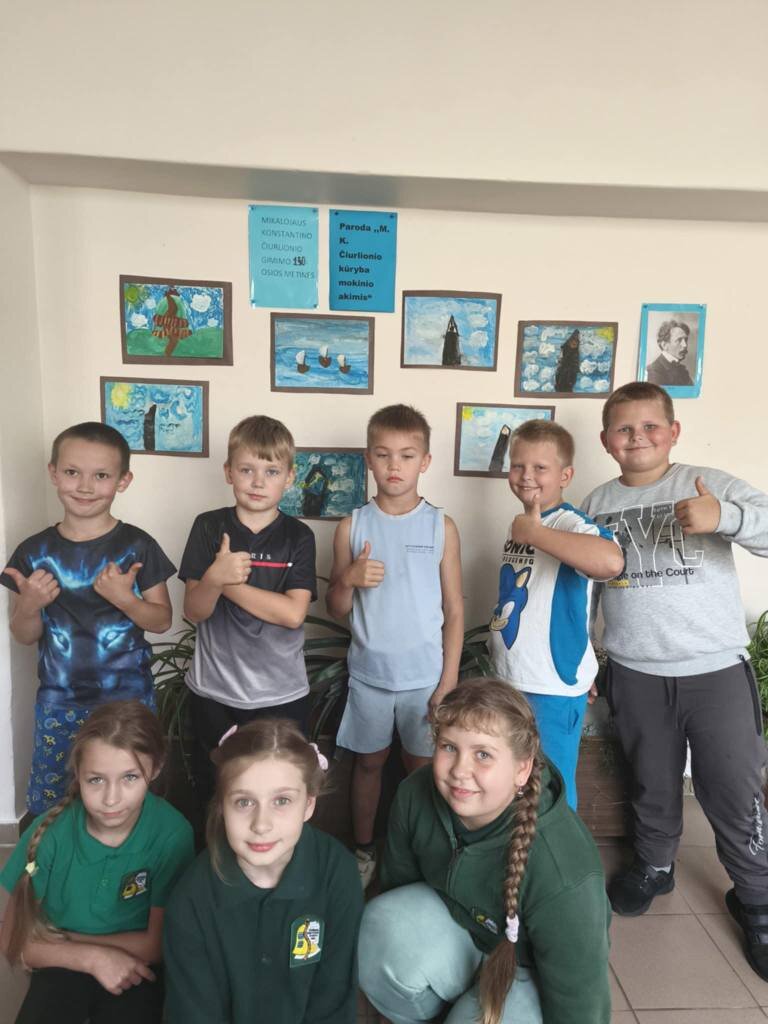 Pradinių klasių mokiniai prisilietė prie M. K. Čiurlionio pasaulio per žaidimą, kūrybą ir vaizduotę. Pirmos klasės mokiniai dekoravo simbolinį jubiliejinį tortą kūrinių motyvais. Antrokai ne tik domėjosi menininko gyvenimu, bet ir surengė piešinių parodą „M. K. Čiurlionio kūryba mokinio akimis“, dėliojo jo paveikslų dėliones. Trečiokai žaidimo forma tyrinėjo paveikslus „Pilies pasaka“ ir „Pasaka“, o ketvirtokai, įkvėpti simfoninės poemos „Miške“, tapė savo jausmų ir paslapčių kupinus miškus.