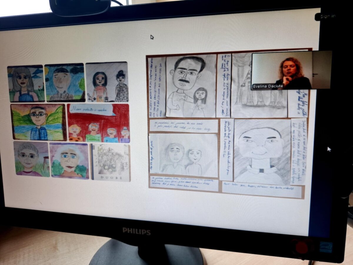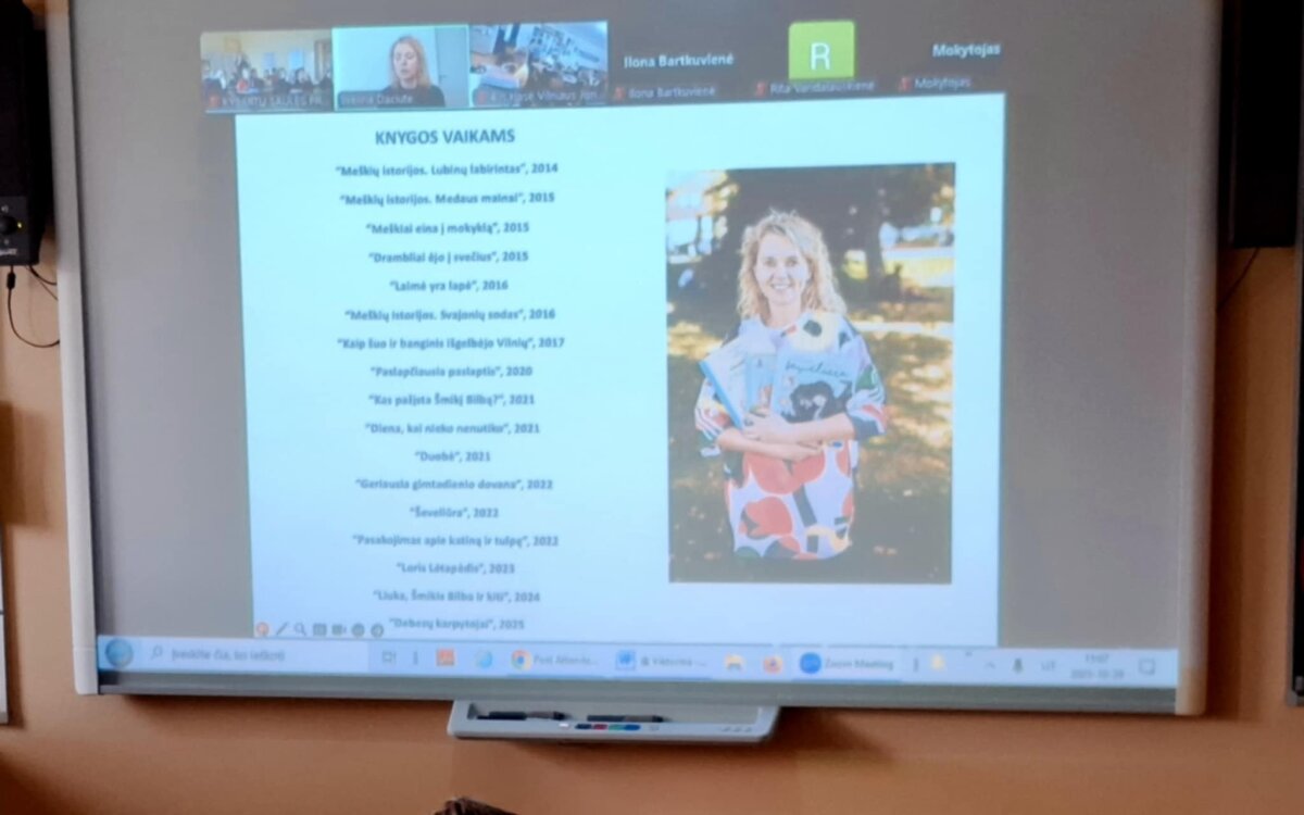 Prieš Vėlines 3 klasės mokiniai jungėsi į nuotolinį susitikimą su vaikų rašytoja Evelina Daciūte. Visi kartu klausė rašytojos skaitomos knygos „Duobė“.