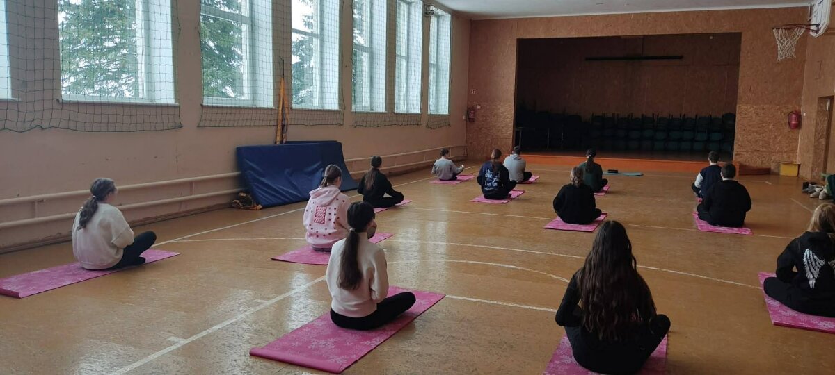 Meditacijos terapijos trenerė su mokiniais diskutavo apie įvarius atsipalaidavimo metodus, praktiškai išbandė keletą jogos pratimų, kvėpavimo technikų bei meditaciją.