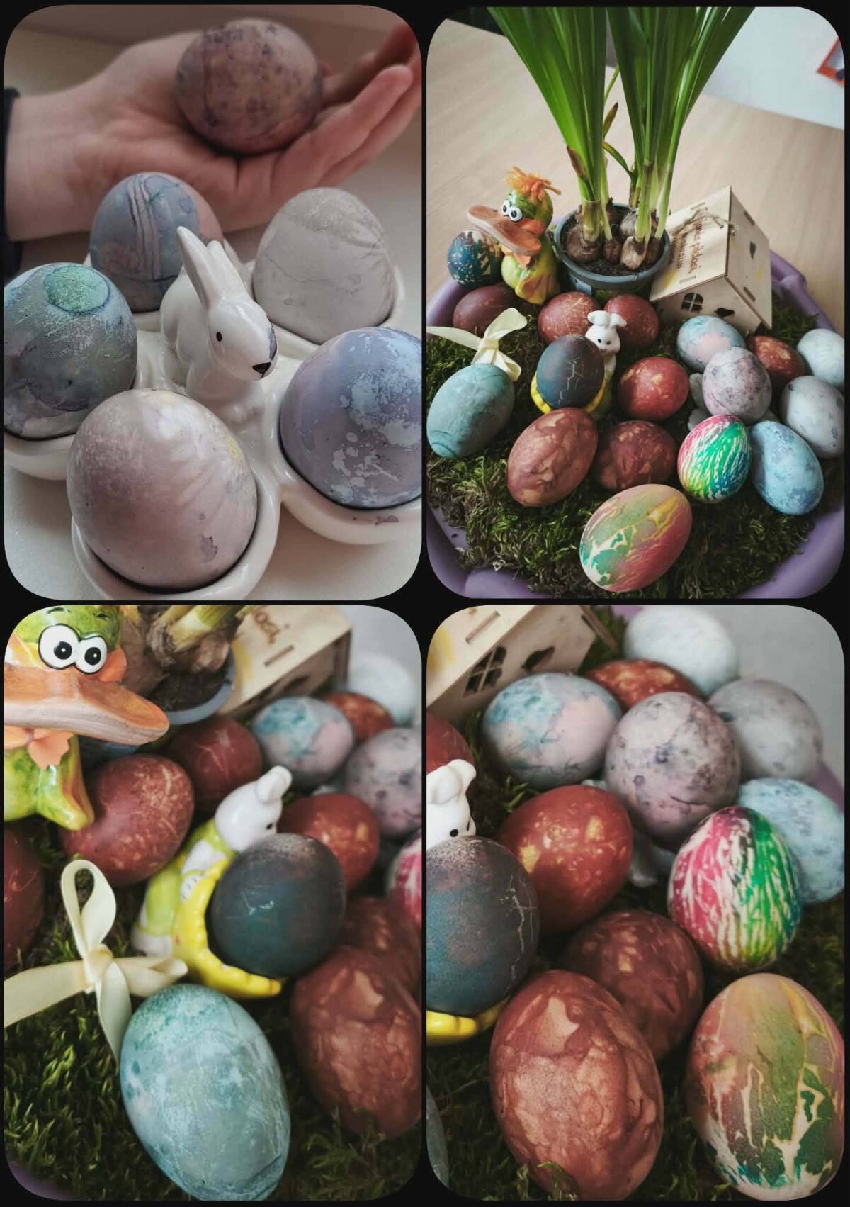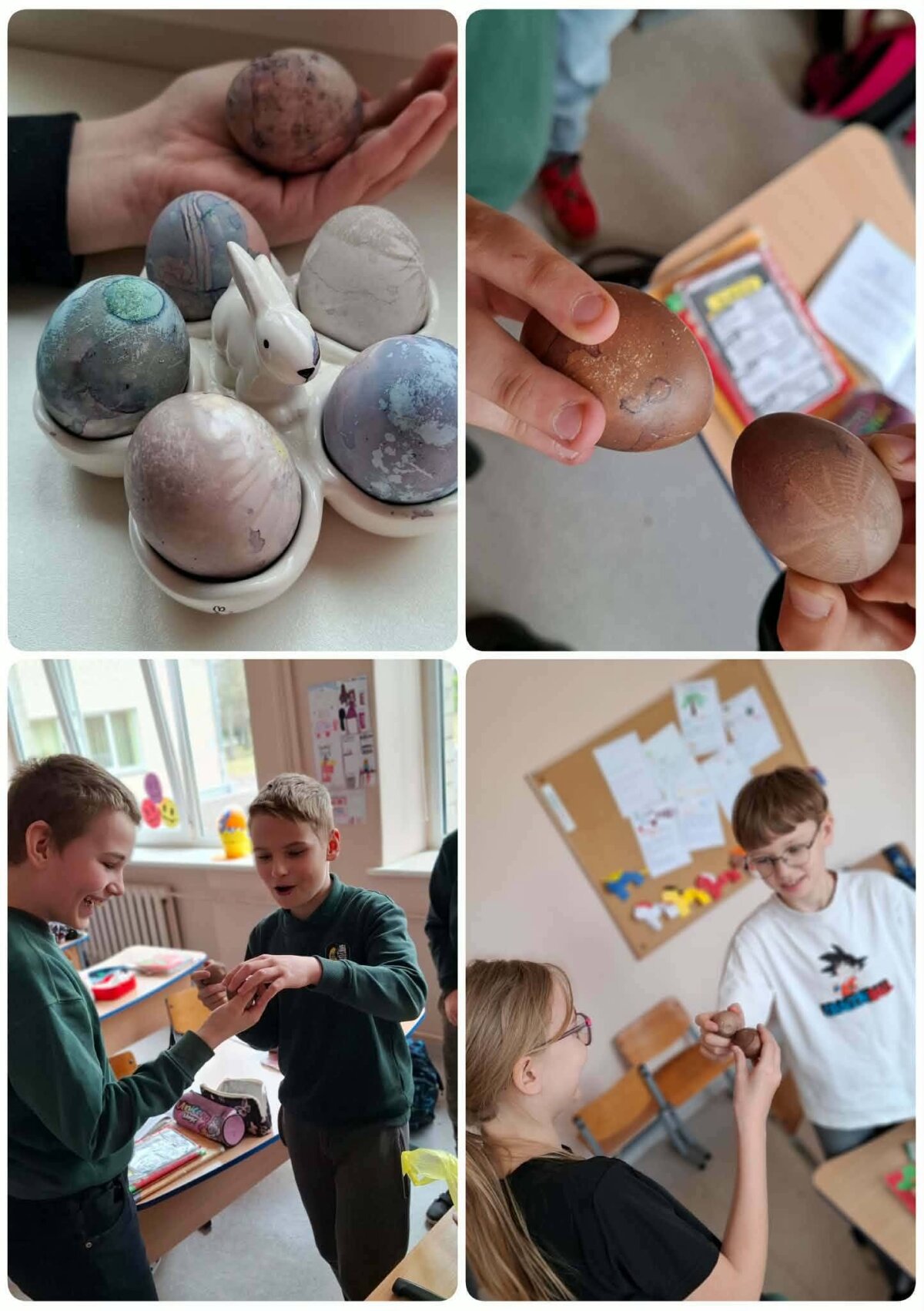 *Kiaušinių MARGINIMĄ. Pradinukai susipažino su keliais marginimo būdais, derindami tradicijas ir šiuolaikines idėjas. Kiekvienas margutis tapo mažu meno kūriniu.