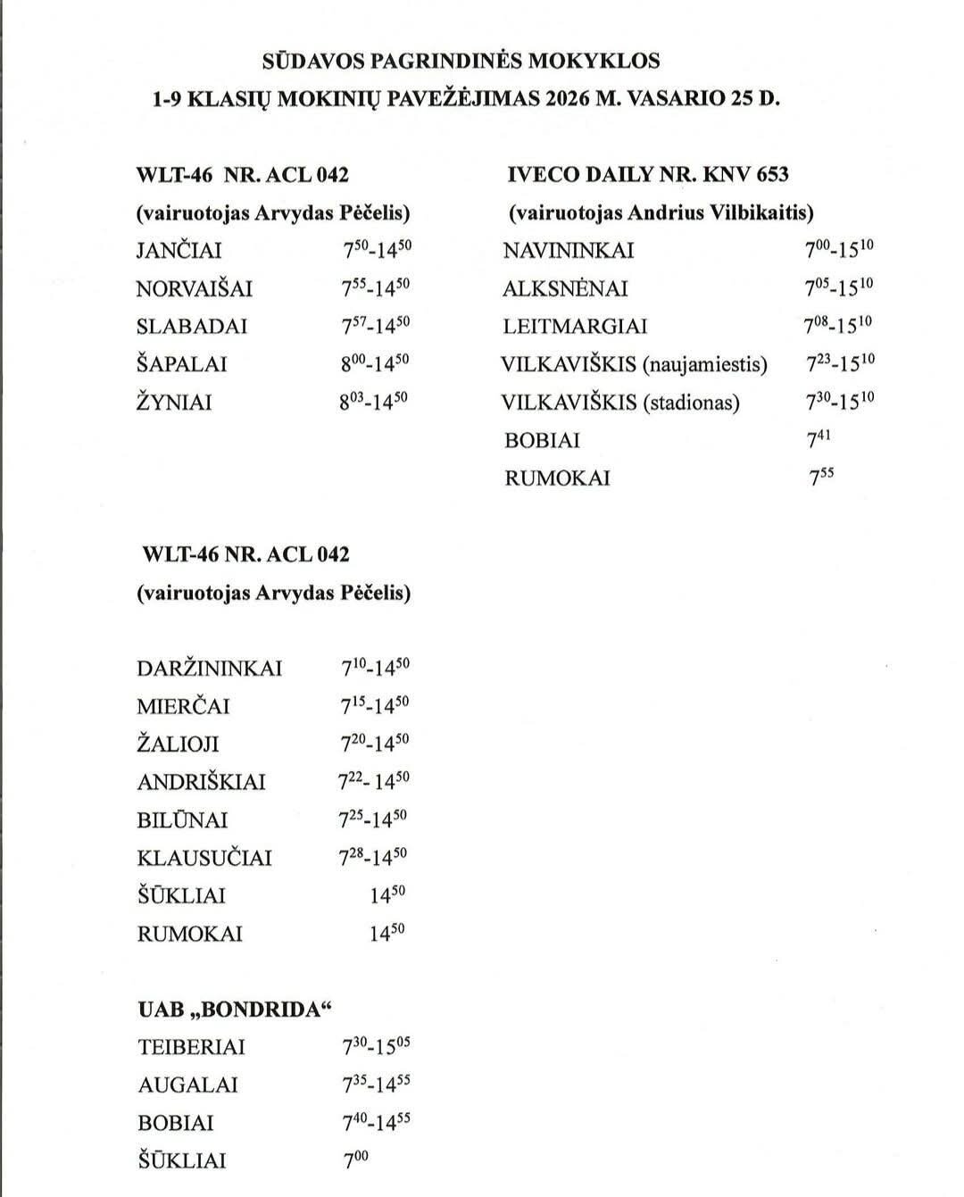 Mokinių pavežėjimas nuo kovo 10 d. -