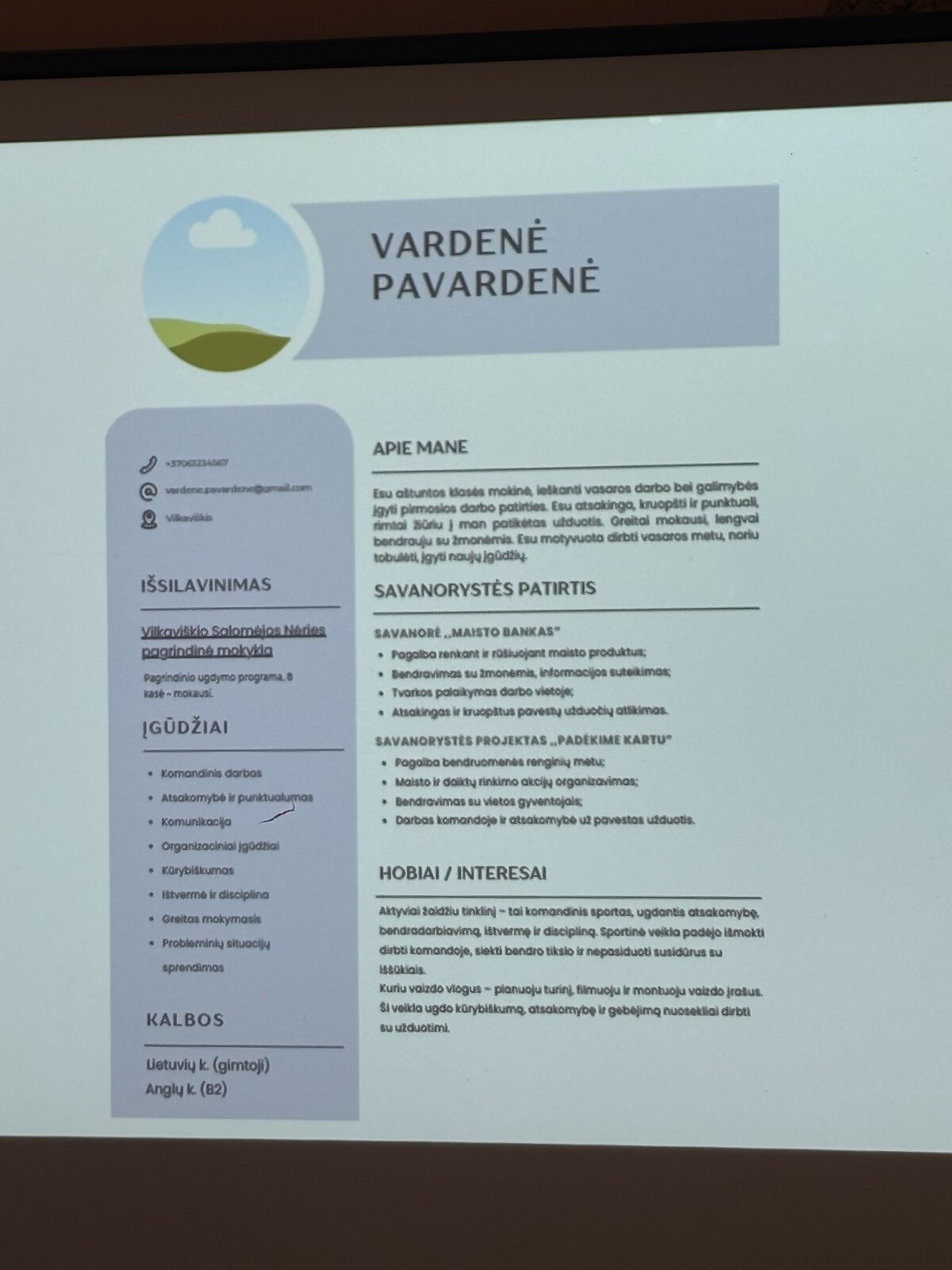 Susitikimo metu mokiniai sužinojo, kaip tvarkingai ir aiškiai parengti CV, į kokius aspektus verta atkreipti dėmesį rašant motyvacinį laišką, kokių klaidų dažniausiai daroma ir kaip jų išvengti. Taip pat aptarta, kaip išsiskirti iš kitų kandidatų ir palikti gerą pirmąjį įspūdį.
